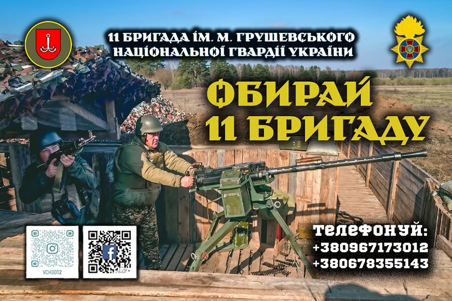 Детальніше11 бригада імені Михайла Грушевського Національної гвардії України запрошує до своїх лав тих, хто готовий стати професіоналом військової справи. Що…