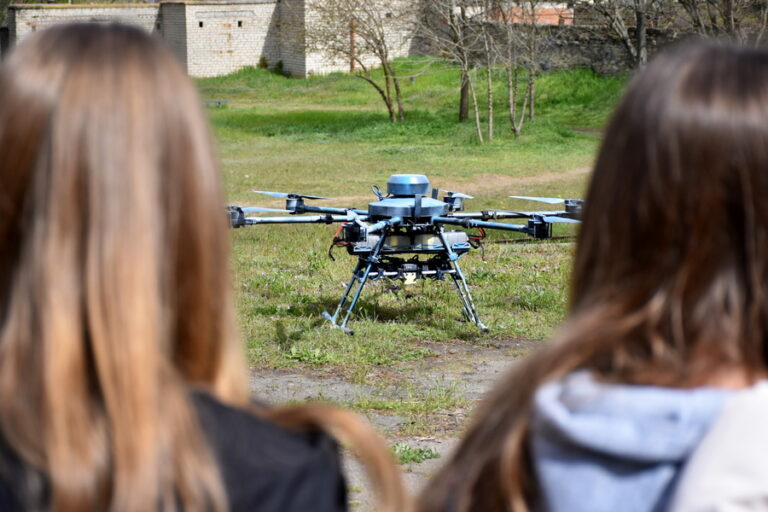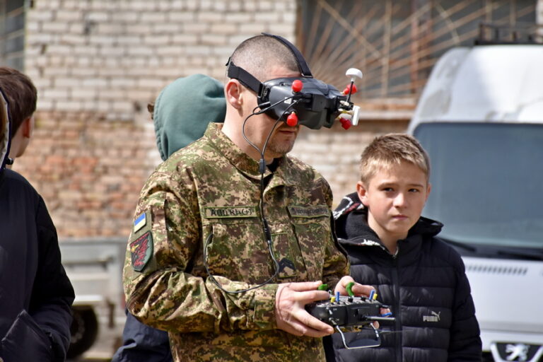 Гвардійці приїхали на зустрічі військово-патріотичного спрямування не з порожніми руками: вони познайомили школярів і школярок із різними видами безпілотних літальних апаратів – від розвідувальних і ударних FPV-дронів до важких «бомберів» і БпЛА літакового типу, дозволили усім охочим побувати всередині евакуаційного автомобіля, а ще, звичайно, на практиці показали, наскільки потужно виглядає у повітрі гексакоптер. Окремої уваги заслужив чотирилапий помічник кінолога Олександра.