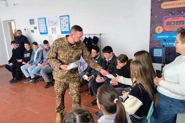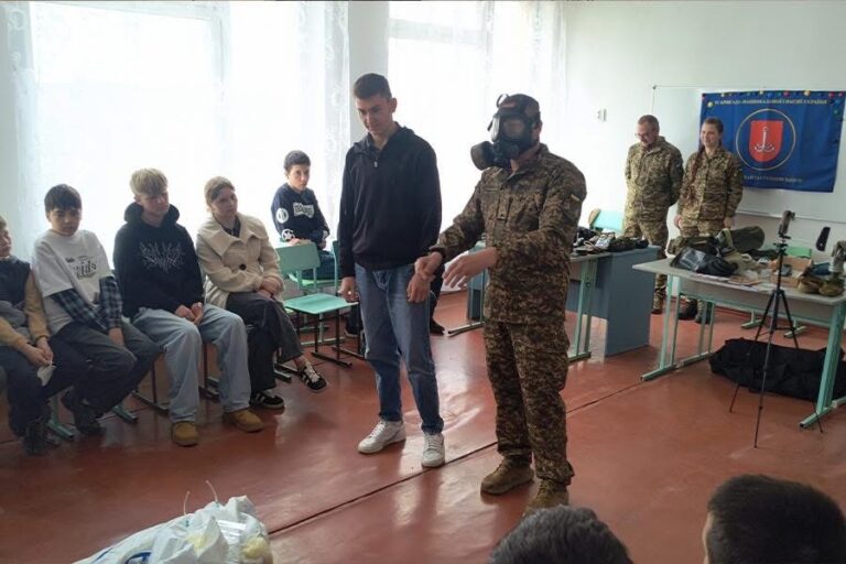 Окрім цього, гвардійці провели урок мужності для школярів, під час якого дітей навчали базовим навичкам радіологічної безпеки, а також ознайомили з правилами захисту від актуальних загроз воєнного часу: мінної небезпеки, алгоритмами дій у разі застосування хімічної та біологічної зброї та порядком реагування у випадку ураження ворогом розташованих поблизу підприємств.